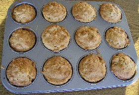 In ein ausgefettetes Muffins Blech ( 12 St ) einfüllen + bei 160° C Umluft ohne vorheizen 30 min backen. Ohne Umluft ca. 180 -190 °C, vorheizen, ca. 20 min.