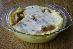 2 feuerfeste Schüsseln mit Butter ausfetten, Quetschkartoffeln aufteilen und evtl auch den Rand ein wenig damit ausfüllen,