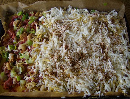 Ziegenkäse statt Gauda, habe nur ca 300 g Käse verbraucht, weil einer ohne Käse haben wollte.