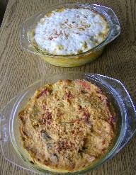 Der dunkle Auflauf, ohne Käse und ohne Deckel gebacken.