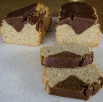 Zucker gut verrühren lassen, und danach noch den Rotwein langsam dazu geben, so dass die gleiche Teigflüssigkeit wieder hergestellt ist, wie der weiße Teig, diese Mischung einfach der Länge nach in den hellen Teig ge-ben.