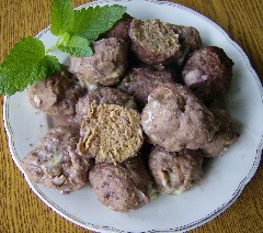 mit nassen Händen, mittel große Klöße aus der Fleischmasse formen, in die Soße geben, sollten wenigsten 2-3 cm bedeckt sein, sonst bitte mit guten trocknen Weißwein auffüllen, und zugedeckt 30 min leise ziehen lassen.