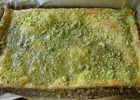 Diese Masse jetzt auf den eingefetteten Blätterteig, verteilen,