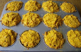 Kartoffeln und Möhren vermengen, dann die trocknen Zutaten alles gut