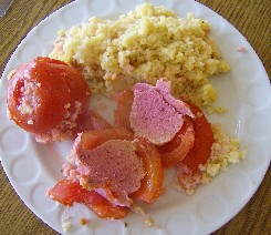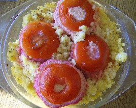 das Innere der Tomaten mit Salz, Pfeffer oder Paprikagranulat aufkochen, abschmecken, und drüber geben.