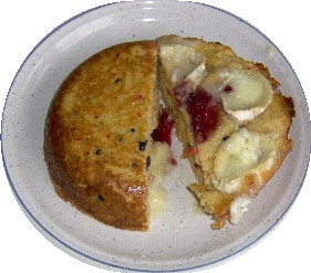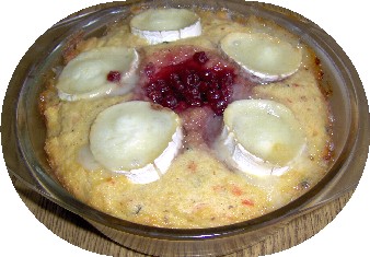 in zwei ein Liter eingefettete Auflaufformen füllen, glattstreichen, auf jeden Auflauf den in dicke Ringe geschnittenen Ziegenkäse, ein wenig in den Teig drücken, je 1 El Preiselbeeren in die Mitte geben, Deckel schließen.