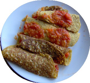 Die Tortillas braten, warm stellen, wenn alle fertig, mit dem Gemüse 1 o-der 2 El füllen, zusammen klappen.