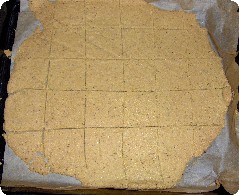 in den kalten Backofen bei ca 170°C Heißluft ca 20 - 30 min backen, in Rechtecke oder Rauten schneiden, abkühlen lassen