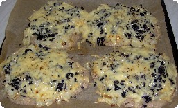 In den kalten Backofen bei 150°C Heißluft untere Schiene, bis die Tempe-ratur erreicht, dann auf Mittelschiene und Grillheißluft umstellen für gut 20 min, insgesamt ca 30 min