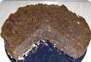 Eierlikör in eine Rührschüssel einer Küchenmaschine gießen, Blaumohn reinmahlen, lassen, geraspelte Äpfel, wo nur Stiel u Blüte entfernt wurde, sowie den gemahlenen Vollkornreis dazu geben, und gut 3-5 min auf Mit-telstufe verrühren lassen, Ringform mit Backpapier ausfüllen, auf den Bo-den zerkrümelte Reiswaffeln verteilen, darauf die Mohnmasse gießen, glattschütteln, in den kalten Backofen bei ca 155°C Heißluft ca 90 min ba-cken, Nadelprobe.