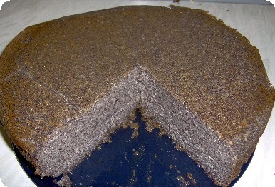 in einen kalten Backofen bei ca 150°C Heißluft ca 90 min backen, Nadel-probe, möglichst über Nacht, sich verfestigen lassen,