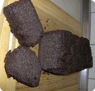 Kokosnussmilch sämig verrühren, lassen. Da hinein den Blaumohn, mahlen, mit Salz und Zucker und Rum verrühren, zum Schluss noch den gemahlenen Vollkornreis untermischen. In eine 30 cm mit Backpapier ausgefüllte Kastenbackform gießen, glattschütteln, in einen kalten Backofen ca 90 min bei 150°C backen, Nadelprobe. nach ca 30 min, Vorsichtig aus der Form ziehen und wenigstens 15 h Ruhen lassen, fällt sonst auseinader. Reis braucht so lange um sich zu verfestigen.