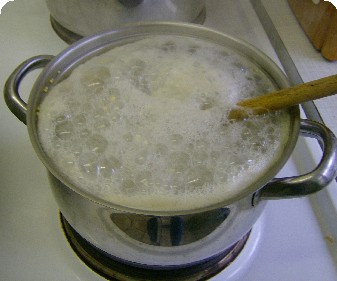 so wie Reis , nur das Hirse erst mit kochendem Wasser übersprüht werden muß, um die Bitterstoffe zu entfernen.