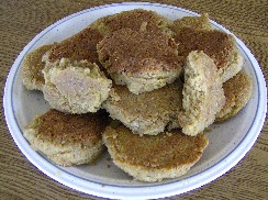 16 runde Plätzchen aus dem Teig formen und diese Portionsweise in Öl knusprig braun braten.